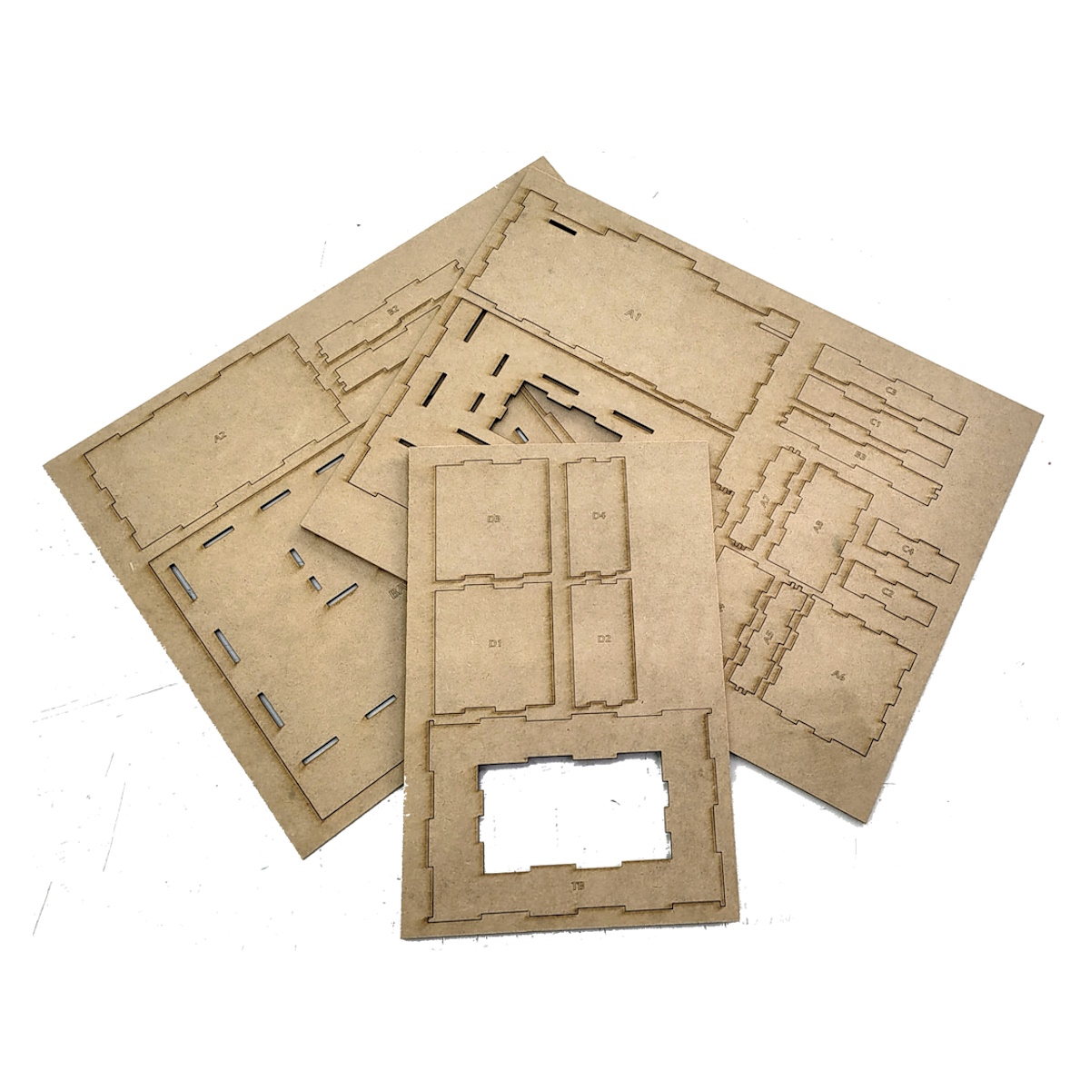 Edificio CDMX, fabricado en mdf, para ensamblar. Requiere muy poco pegamento. Adhesivos, etiquetas para para pegar y simular la fachada. Medidas 17 x 25 x 10 cm.