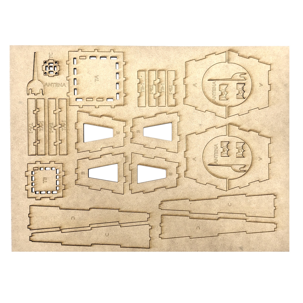Fabricado en mdf, para ensamblar. Requiere muy poco pegamento. Adhesivos, etiquetas para para pegar y simular la fachada. Medidas 10 x 10 x 28 cm.